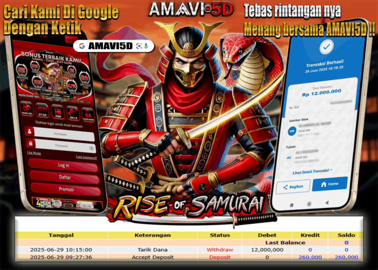 WAMAVI5D JACKPOT SLOT RISE OF SAMURAI Rp 12.000.000 MINGGU , 29 JUNI 2025 Selamat kepada User id : 4aT***if Telah berhasil mendapatkan kemenangan besar pada permainan SLOT RISE OF SAMURAI kemenangan Sebesar Rp.12.000.000, Setelah mengisi formulir withdraw dengan kurung waktu hanya 5 – 10 menit pihak amavi5d sudah melakukan transfer kepada pemilik User id dan…