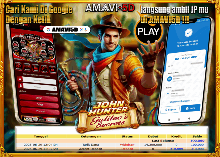 WAMAVI5D JACKPOT SLOT JHON HUNTER GALILEO’S SECRETS Rp 14.300.000 MINGGU , 29 JUNI 2025 Selamat kepada User id : awq***if Telah berhasil mendapatkan kemenangan besar pada permainan SLOT JHON HUNTER GALILEO’S SECRETS kemenangan Sebesar Rp.14.300.000, Setelah mengisi formulir withdraw dengan kurung waktu hanya 5 – 10 menit pihak amavi5d sudah melakukan transfer kepada pemilik User…