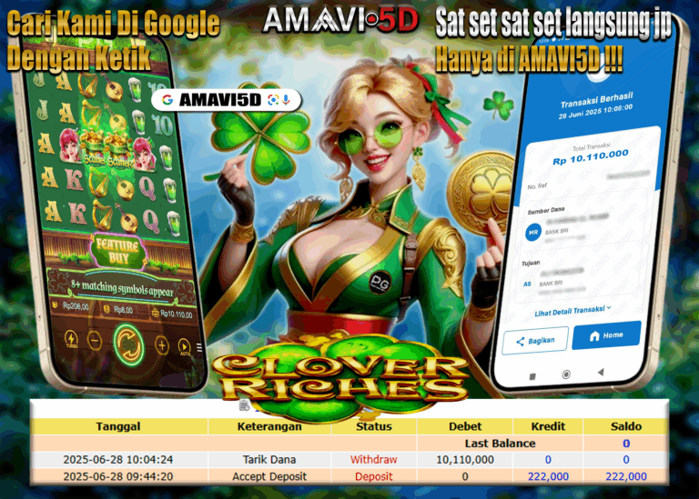 WAMAVI5D JACKPOT SLOT LUCKY CLOVER RICHES Rp 10.110.000 SABTU , 28 JUNI 2025 Selamat kepada User id : law****4a Telah berhasil mendapatkan kemenangan besar pada permainan SLOT LUCKY CLOVER RICHES kemenangan Sebesar Rp.10.110.000, Setelah mengisi formulir withdraw dengan kurung waktu hanya 5 – 10 menit pihak amavi5d sudah melakukan transfer kepada pemilik User id dan…
