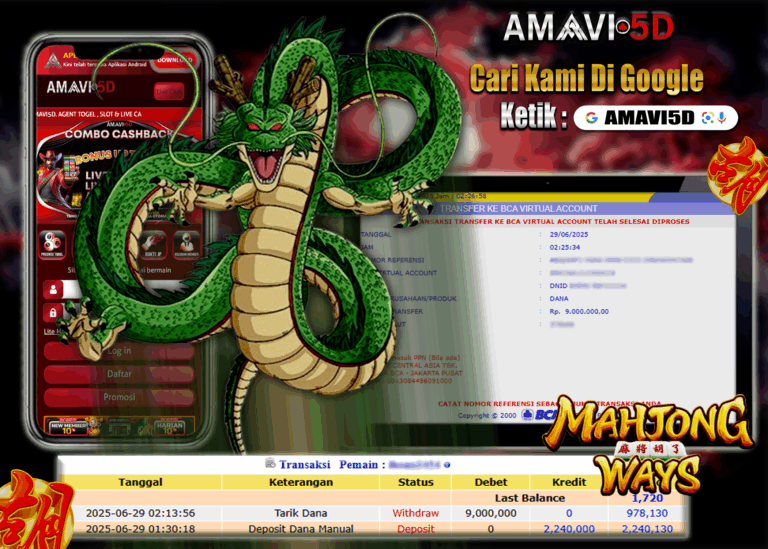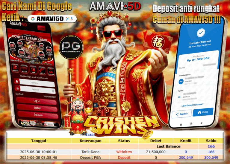 AMAVI5D JACKPOT SLOT MAHJONG WINS GONG XI FA CAI Rp.229.000.000,- LUNAS Rabu, 23 Januari 2025 Selamat kepada User id : Dar***45 Telah berhasil mendapatkan kemenangan besar pada permainan MAHJONG WINS GONG XI FA CAI kemenangan Sebesar Rp.229.000.000, Setelah mengisi formulir withdraw dengan kurung waktu hanya 5 – 10 menit pihak amavi5d sudah melakukan transfer…