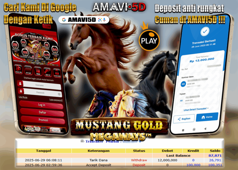 WAMAVI5D JACKPOT SLOT MUSTANG GOLD MEGAWAYS Rp 12.000.000 MINGGU , 29 JUNI 2025 Selamat kepada User id : lat***if Telah berhasil mendapatkan kemenangan besar pada permainan SLOT MUSTANG GOLD MEGAWAYS kemenangan Sebesar Rp.12.000.000, Setelah mengisi formulir withdraw dengan kurung waktu hanya 5 – 10 menit pihak amavi5d sudah melakukan transfer kepada pemilik User id dan…