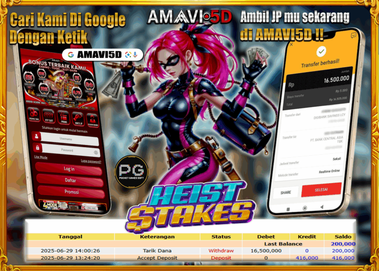 AMAVI5D JACKPOT SLOT HEIST STAKES Rp.16.500.000,- LUNAS
