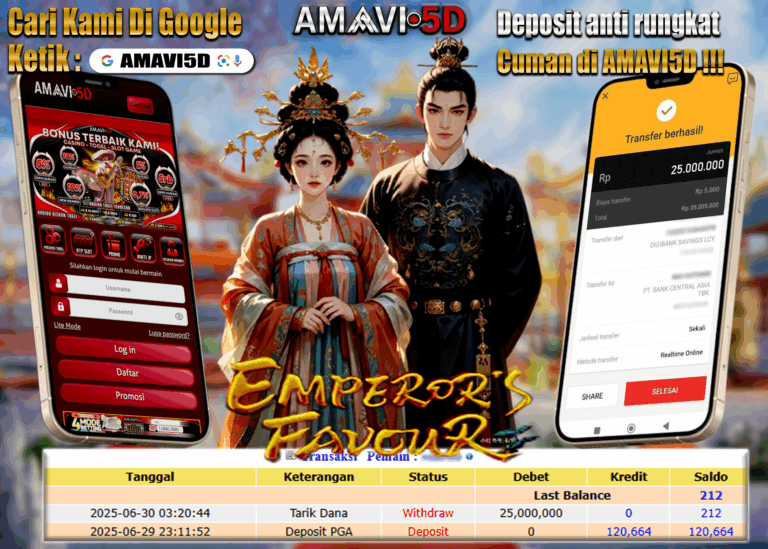 WAMAVI5D JACKPOT SLOT EMPEROR’S FAVOUR Rp 25.000.000 SENIN , 30 JUNI 2025 Selamat kepada User id : den****99 Telah berhasil mendapatkan kemenangan besar pada permainan SLOT EMPEROR’S FAVOUR kemenangan Sebesar Rp.25.000.000, Setelah mengisi formulir withdraw dengan kurung waktu hanya 5 – 10 menit pihak amavi5d sudah melakukan transfer kepada pemilik User id dan dana sudah…