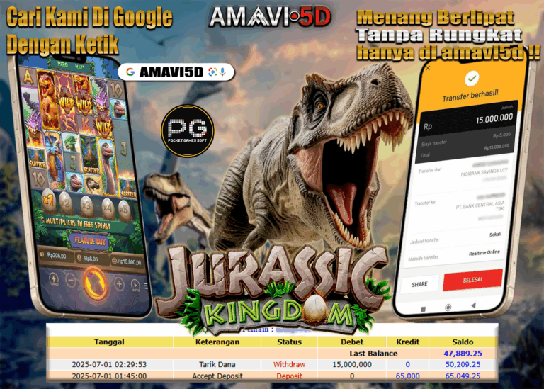 WAMAVI5D JACKPOT SLOT JURASSIC KINGDOM Rp 15.000.000 SENIN , 01 JULI 2025 Selamat kepada User id : kol***26 Telah berhasil mendapatkan kemenangan besar pada permainan SLOT JURASSIC KINGDOM kemenangan Sebesar Rp.18.500.000, Setelah mengisi formulir withdraw dengan kurung waktu hanya 5 – 10 menit pihak amavi5d sudah melakukan transfer kepada pemilik User id dan dana sudah…