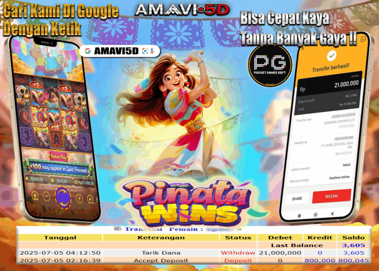 WAMAVI5D JACKPOT SLOT PINATA WINS Rp 21.000.000 SABTU , 05 JULI 2025 Selamat kepada User id : lal**27 Telah berhasil mendapatkan kemenangan besar pada permainan SLOT PINATA WINS kemenangan Sebesar Rp.21.000.000, Setelah mengisi formulir withdraw dengan kurung waktu hanya 5 – 10 menit pihak amavi5d sudah melakukan transfer kepada pemilik User id dan dana sudah…