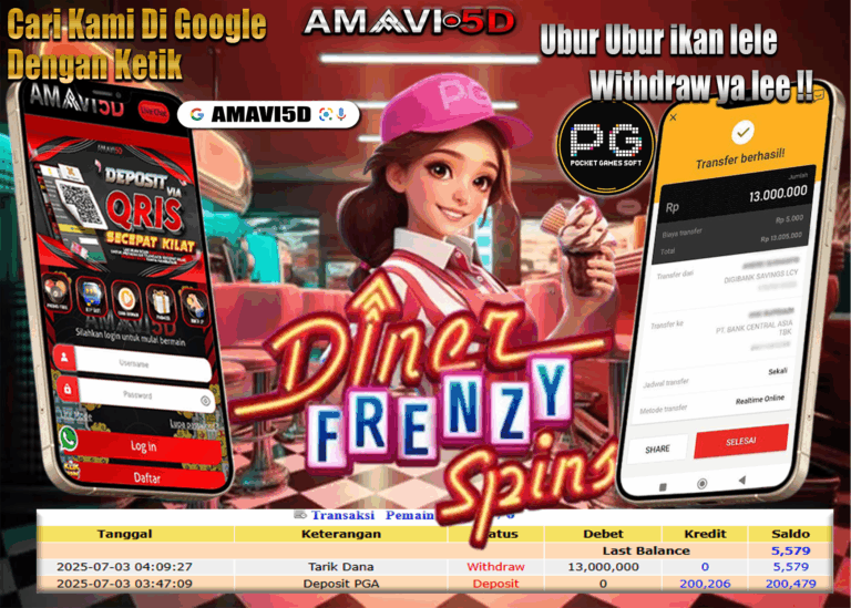 WAMAVI5D JACKPOT SLOT DINER FRENZY SPINS Rp 13.000.000 KAMIS , 03 JULI 2025 Selamat kepada User id : jor**kir Telah berhasil mendapatkan kemenangan besar pada permainan SLOT DINER FRENZY SPINS kemenangan Sebesar Rp.13.000.000, Setelah mengisi formulir withdraw dengan kurung waktu hanya 5 – 10 menit pihak amavi5d sudah melakukan transfer kepada pemilik User id dan…