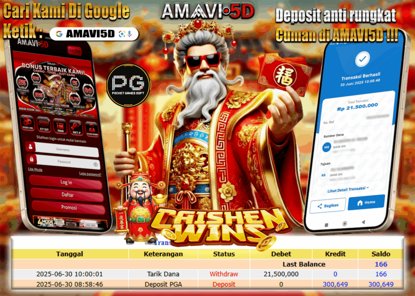 WAMAVI5D JACKPOT SLOT CAISHEN WINS Rp 21.500.000 SENIN , 30 JUNI 2025