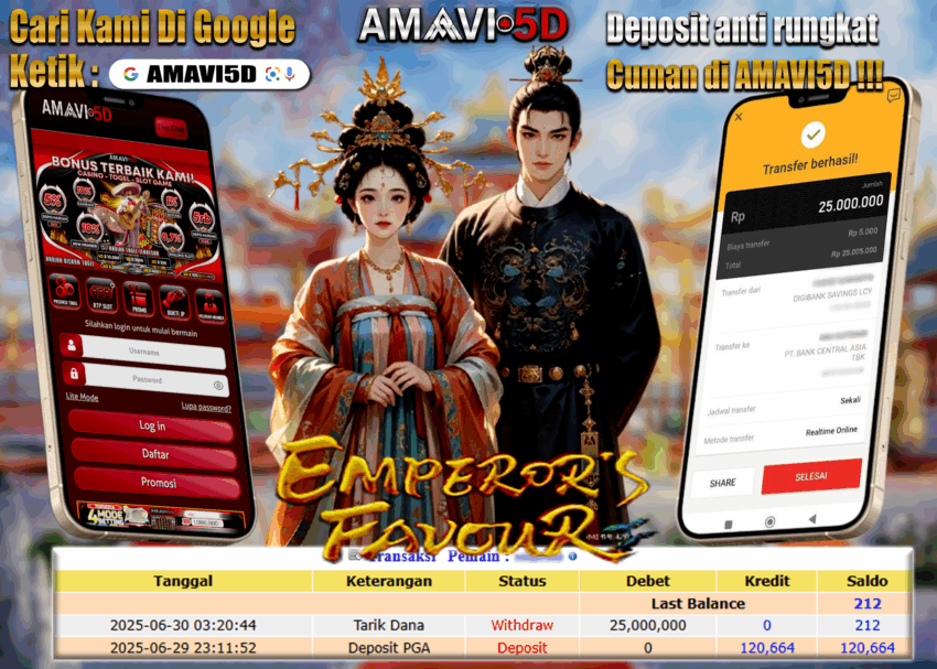 WAMAVI5D JACKPOT SLOT EMPEROR’S FAVOUR Rp 25.000.000 SENIN , 30 JUNI 2025