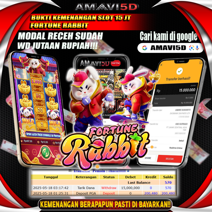AMAVI5D JACKPOT SLOT FORTUNE RABBIT Rp15.000.000,- LUNAS MINGGU, 18 MEI 2025