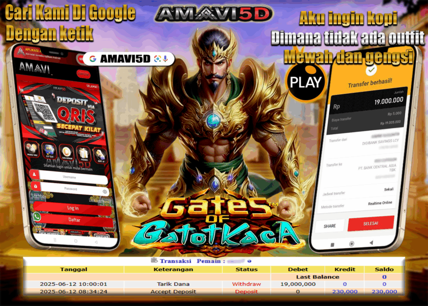 AMAVI5D JACKPOT SLOT GATES OF GATOT KACA Rp 19.000.000 KAMIS , 12 JUNI 2025