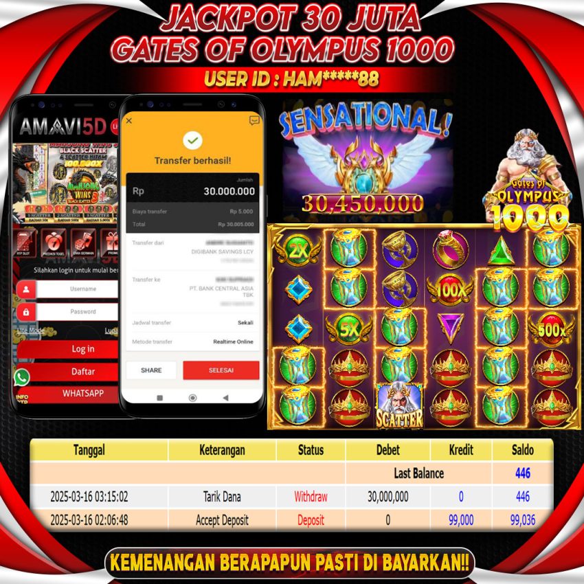 AMAVI5D JACKPOT SLOT GATES OF OLYMPUS 1000 Rp.30,000,000,- LUNAS Minggu, 16 Maret 2025