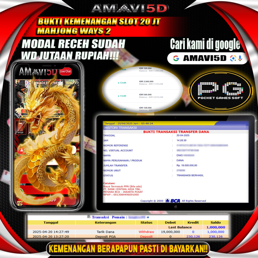 AMAVI5D JACKPOT SLOT MAHJONG WAYS 2 1000 Rp 20.000.000 MINGGU, 20 APRIL 2025