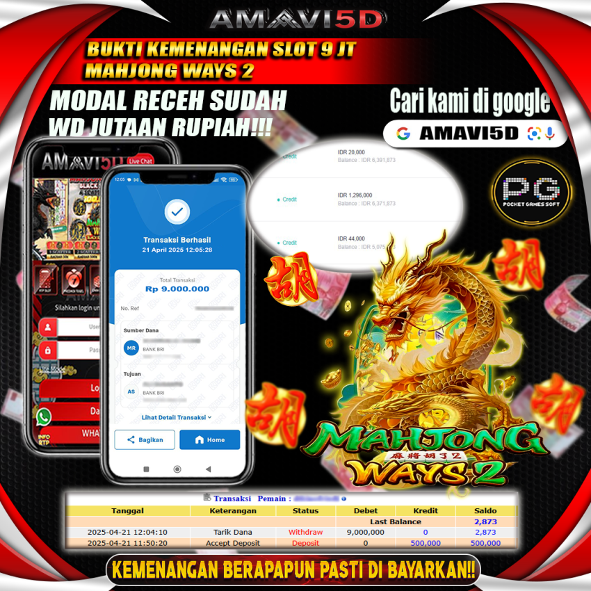 AMAVI5D JACKPOT SLOT MAHJONG WAYS 2 Rp 9.000.000 SENIN, 21 APRIL 2025