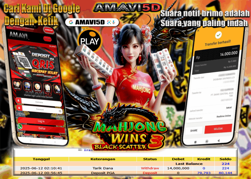 AMAVI5D JACKPOT SLOT MAHJONG WINS 3 BLACK-SCATTER Rp 14.000.000 KAMIS , 12 JUNI 2025