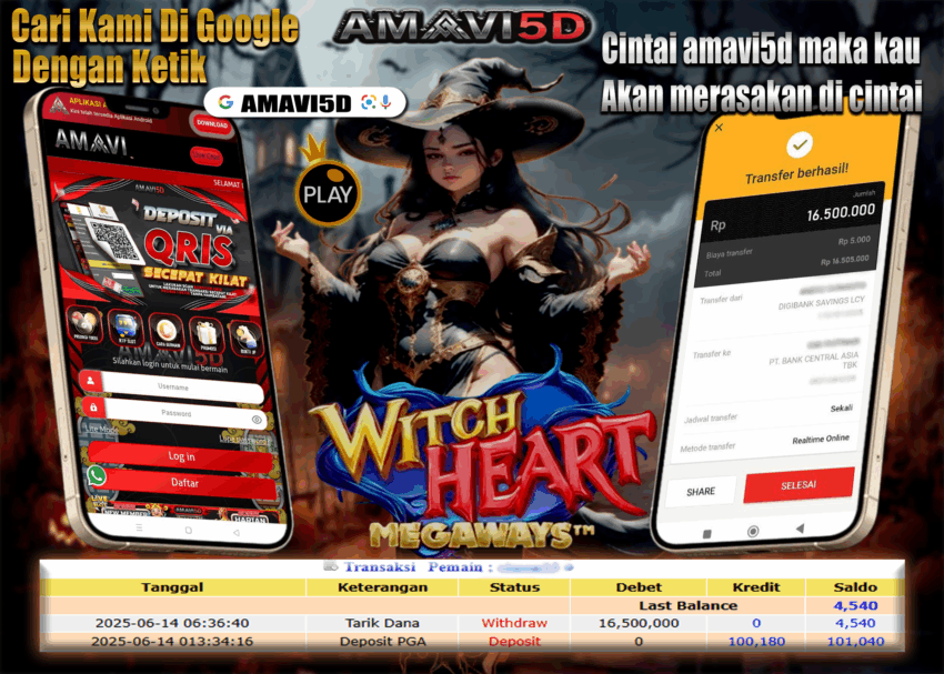AMAVI5D JACKPOT SLOT WITCH HEART MEGAWAYS Rp 16.500.000 SABTU, 14 JUNI 2025